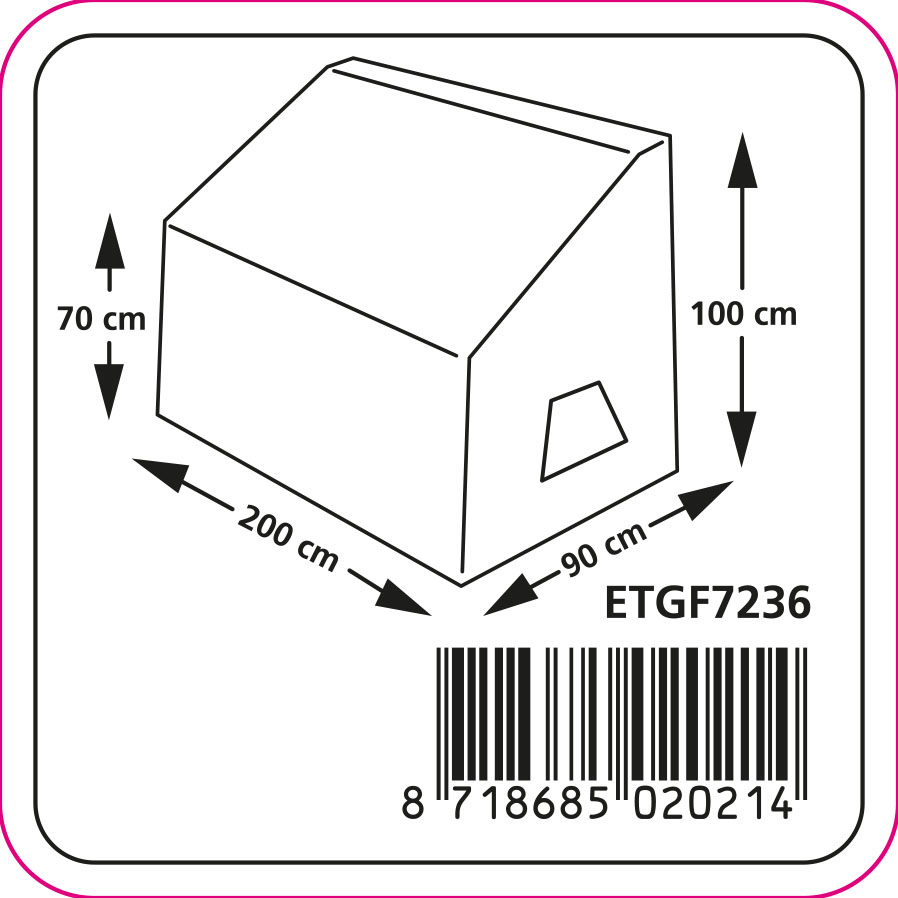 Bank hoes met ongelijke hoogtes. Deze hoes is 200 x 90 cm. De hoogte aan de voorkant is 70 cm en de hoogte aan de achterkant is 100 cm. Houd rekening met het hoogteverschil en neem daarnaast in de lengte of breedte 5 cm speling. Deze hoes past over een tuinbank van 200 x 85 cm of 195 x 90 cm.