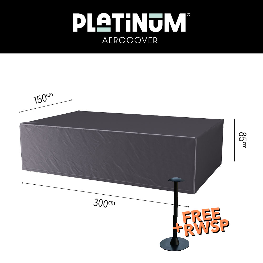 De 7997 beschermhoes van AeroCover is ontworpen voor een grote tuinset, die bestaan uit een tafel van 3 meter en 10 tuinstoelen. De afstand van rug naar rug is maximaal 1,5 meter.