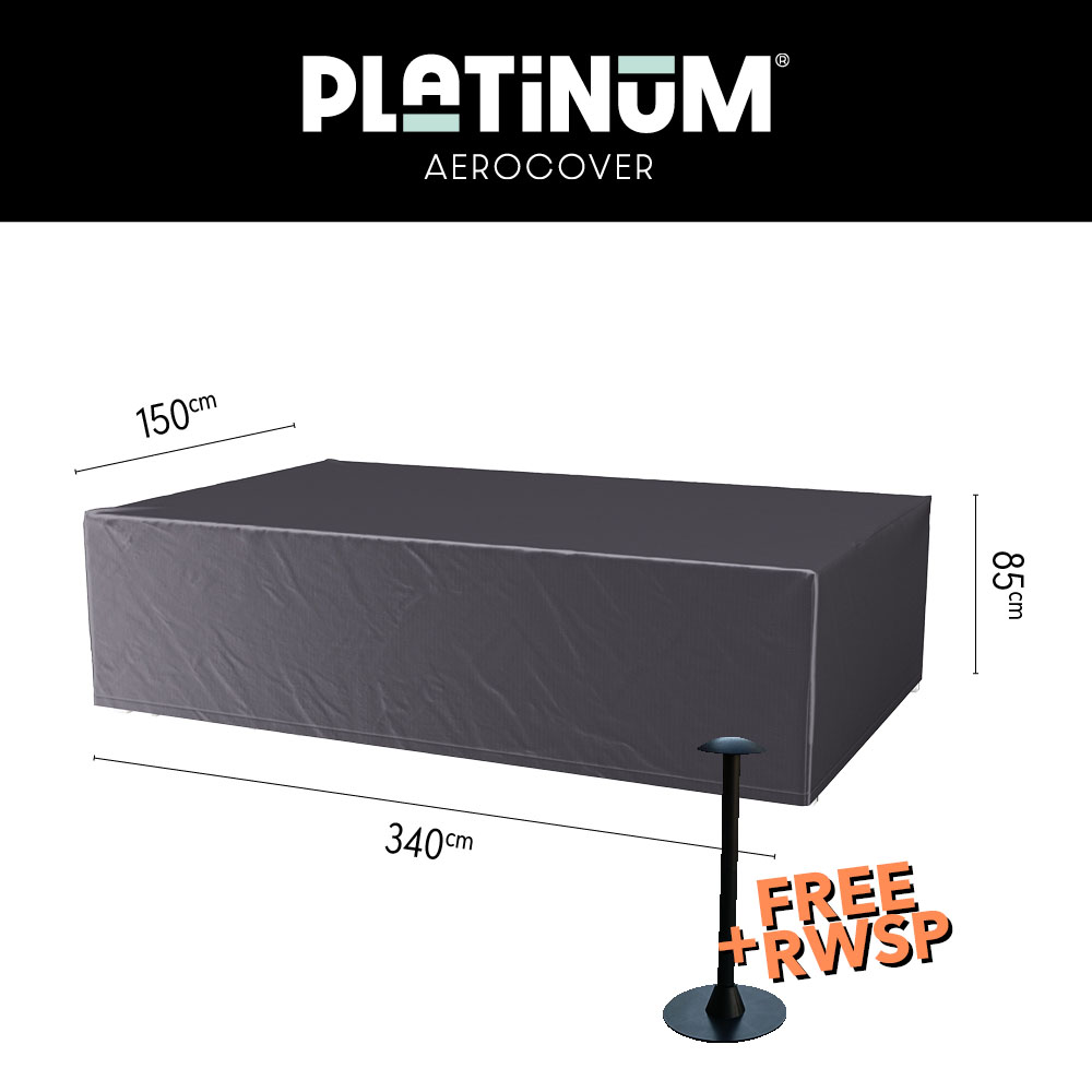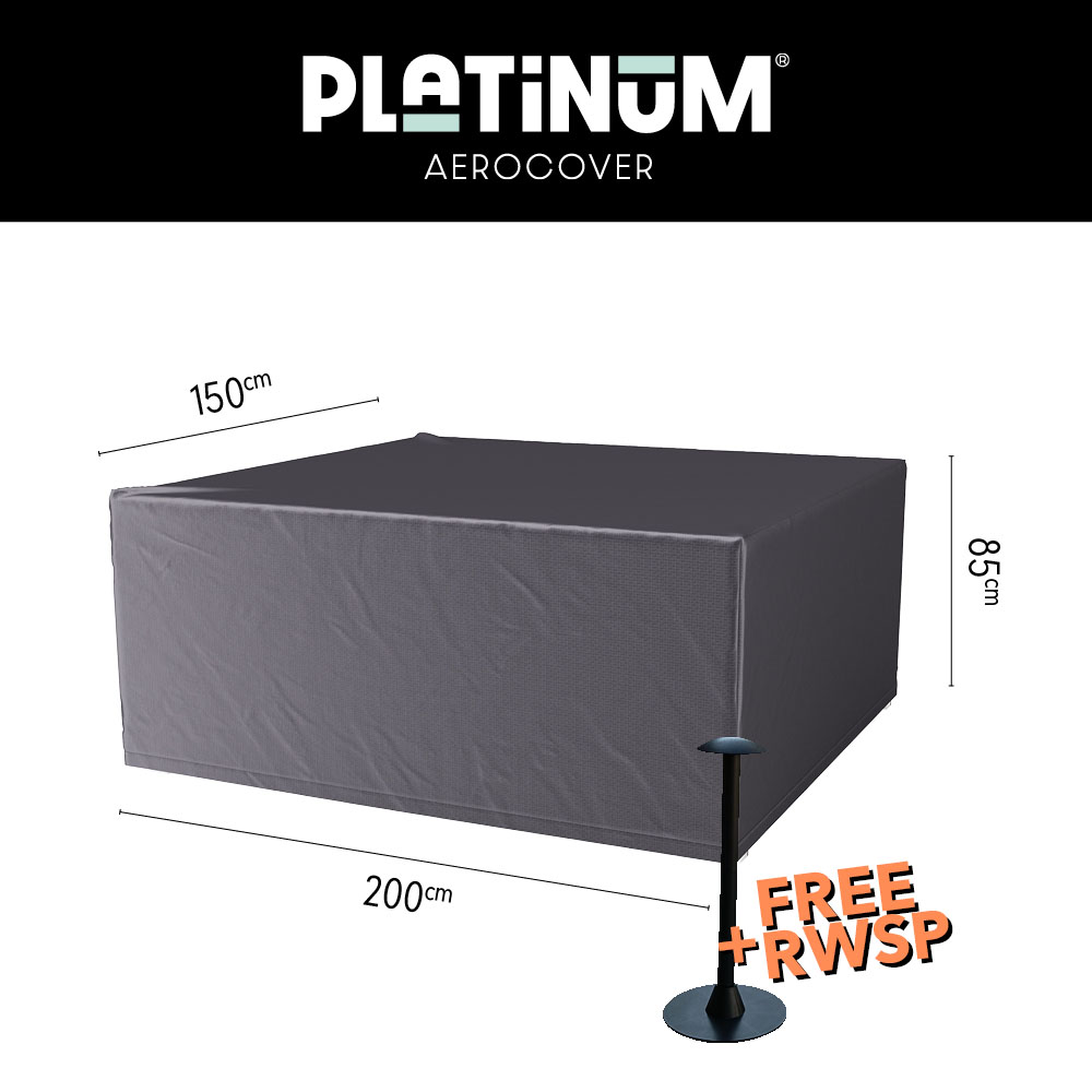 Deze hoes is geschikt voor een tuinset met een rechthoekige tafel en 8 lage stoelen. De afmetingen zijn 240 x 190 cm en de hoes in 85 cm hoog. Hoezen van het merk Aerocover zijn gemaakt van RipStop Polyester. Dit materiaal ademt, is UV-bestendig en werkt waterafstotend. Het materiaal is heel licht van gewicht, hierdoor zal de hoes ook niet veel ruimte innemen wanneer deze is opgevouwen. Condens en schimmelvorming worden met het materiaal ook tegen gegaan. U moet daarbij wel rekening houden dat het niet 100% zeker is dat condens en schimmelvorming volledig worden voorkomen. Door temperatuurverschillen is het namelijk onvermijdelijk dat condensvorming ontstaat. Zorg er daarom voor dat u voldoende ventilatie onder de hoes. Dit doet u door de hoes nooit plat op een tafelblad te leggen. U kunt voor afstand tussen de hoes en het tafelblad zorgen door bijvoorbeeld een bakje, bal of emmer onder de hoes te zetten. Haal geregeld de hoes van uw meubelen zodat deze weer goed kunnen doorluchten. De hoes kan bevestigd worden door middel van het rijgkoord, dat onderaan de hoes zit. Dit rijgkoord kan vastgezet worden met de stopper. Voor extra zekerheid kunt u altijd de bijpassende AeroCover zandzakjes aanschaffen.