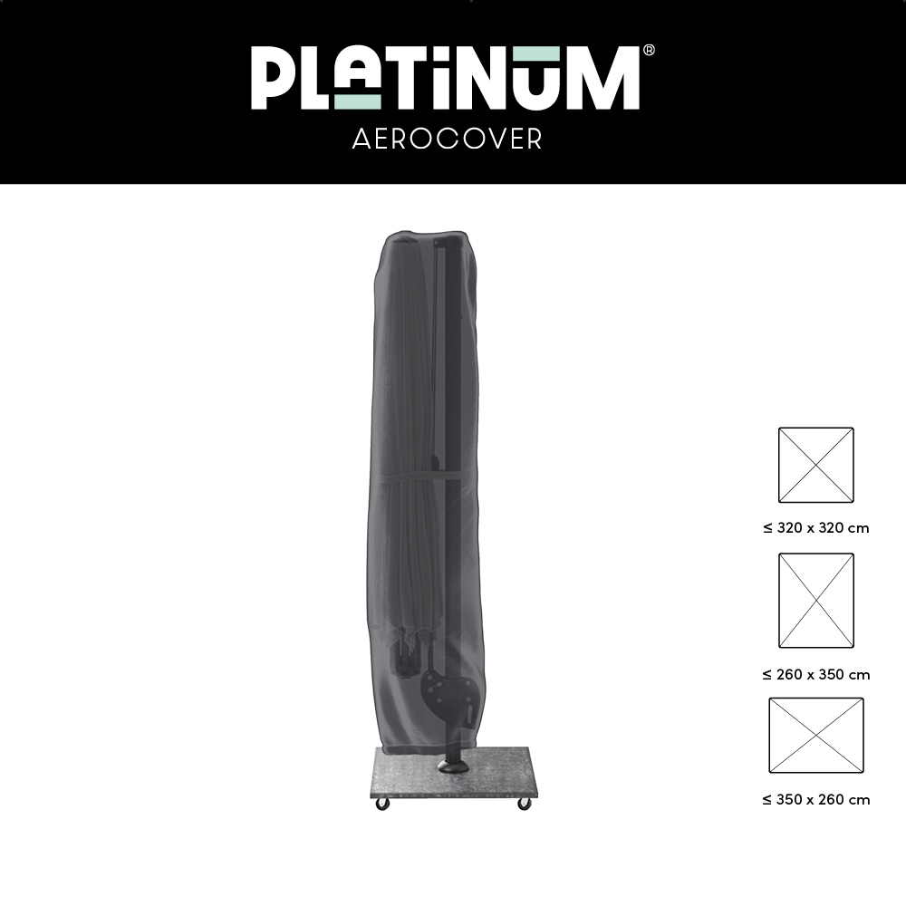 Deze hoes is onder andere geschikt voor modellen zoals de Beaufort en Platinum Challenger T2 (260 x 350 cm en 350 x 260 cm). De antracietkleurige hoes beschermt uw parasol niet alleen tegen weersinvloeden, maar helpt ook schimmelvorming te voorkomen.