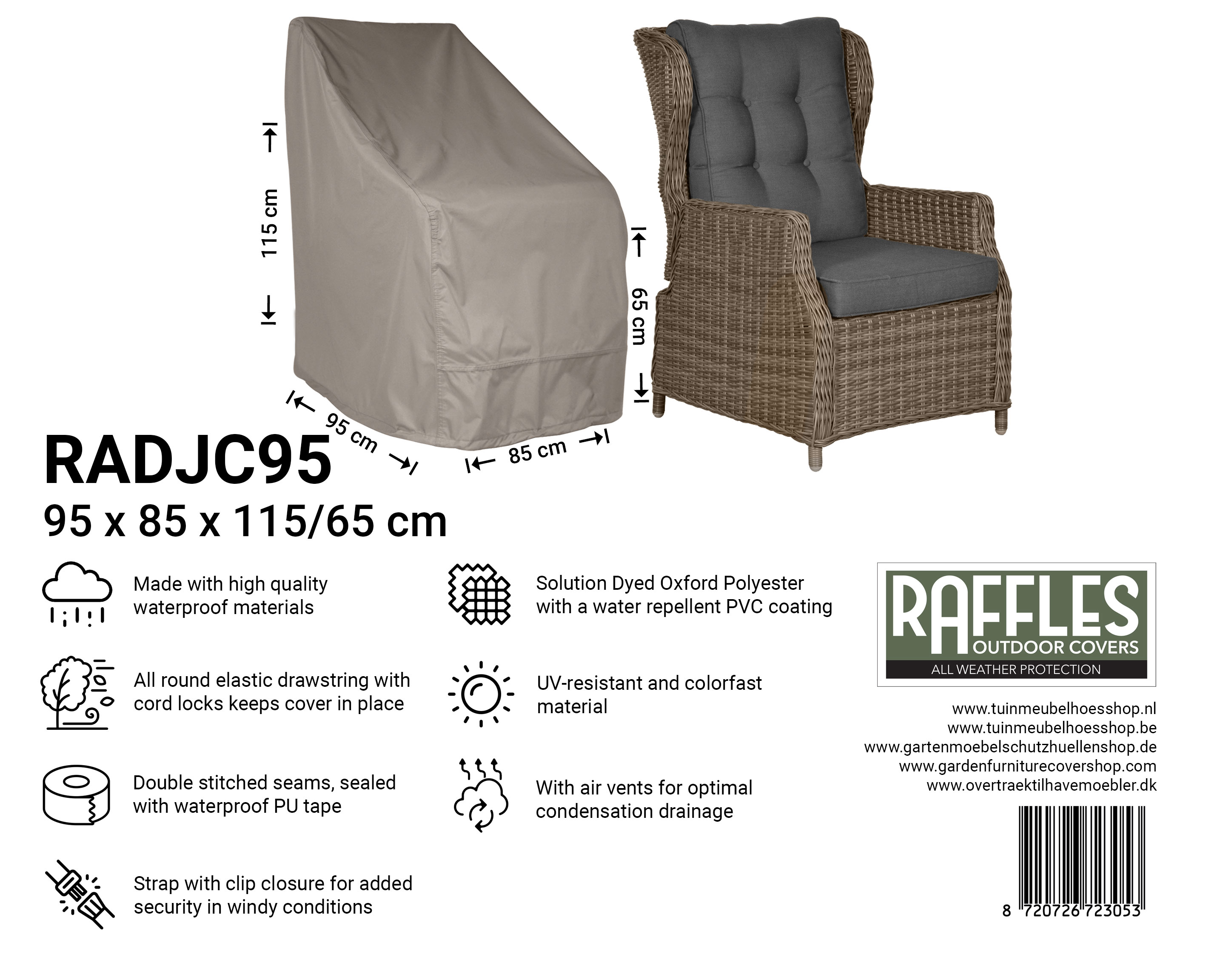 Met de RADJC-serie loungestoelhoezen van Raffles Covers beschermt u uw verstelbare loungestoelen het hele jaar door tegen regen, vuil, UV-straling en vorst. De neutrale hoezen voegen zich rustig in iedere tuin en zorgen ervoor dat uw loungestoel in het voorjaar direct weer schoon en gebruiksklaar is.