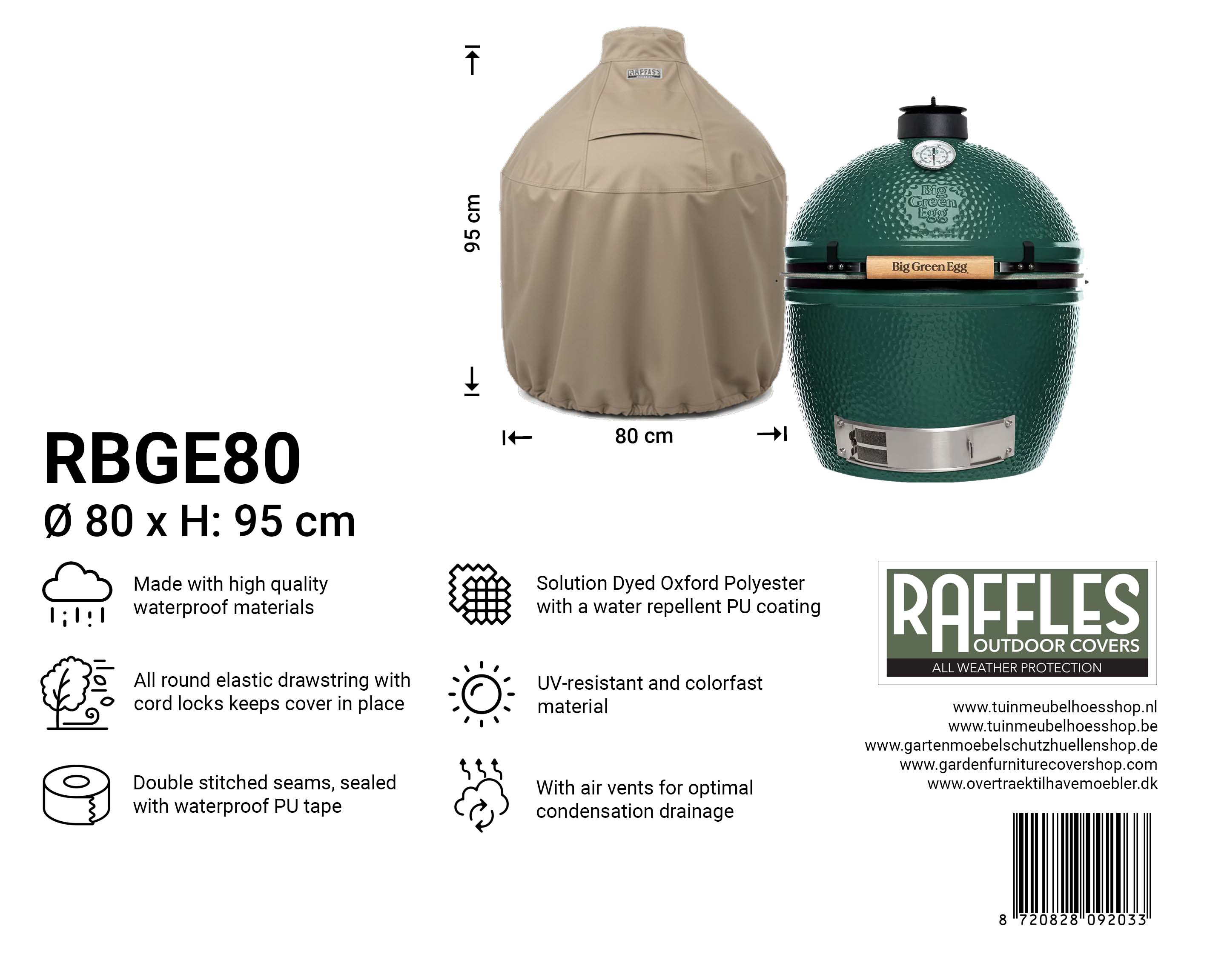 Product specificaties "Raffles Covers Kamado Hoes voor Big Green Egg & Kamado BBQ’s"