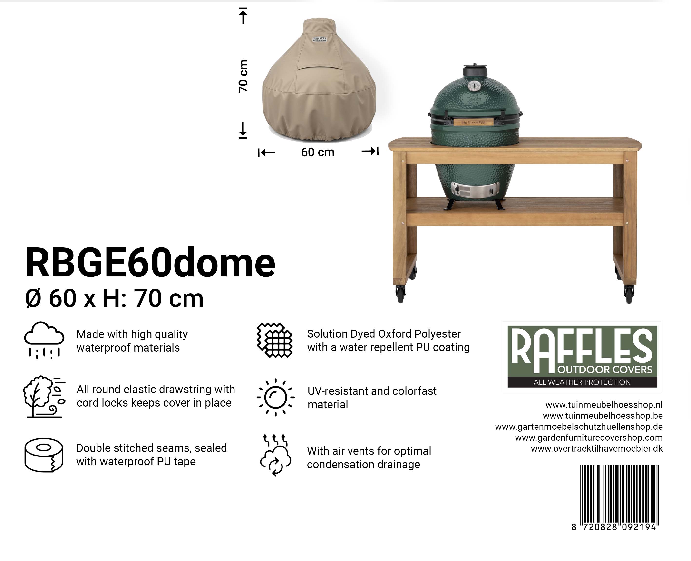 Product specificaties "Raffles Covers Kamado Hoes voor Big Green Egg & Kamado BBQ’s"