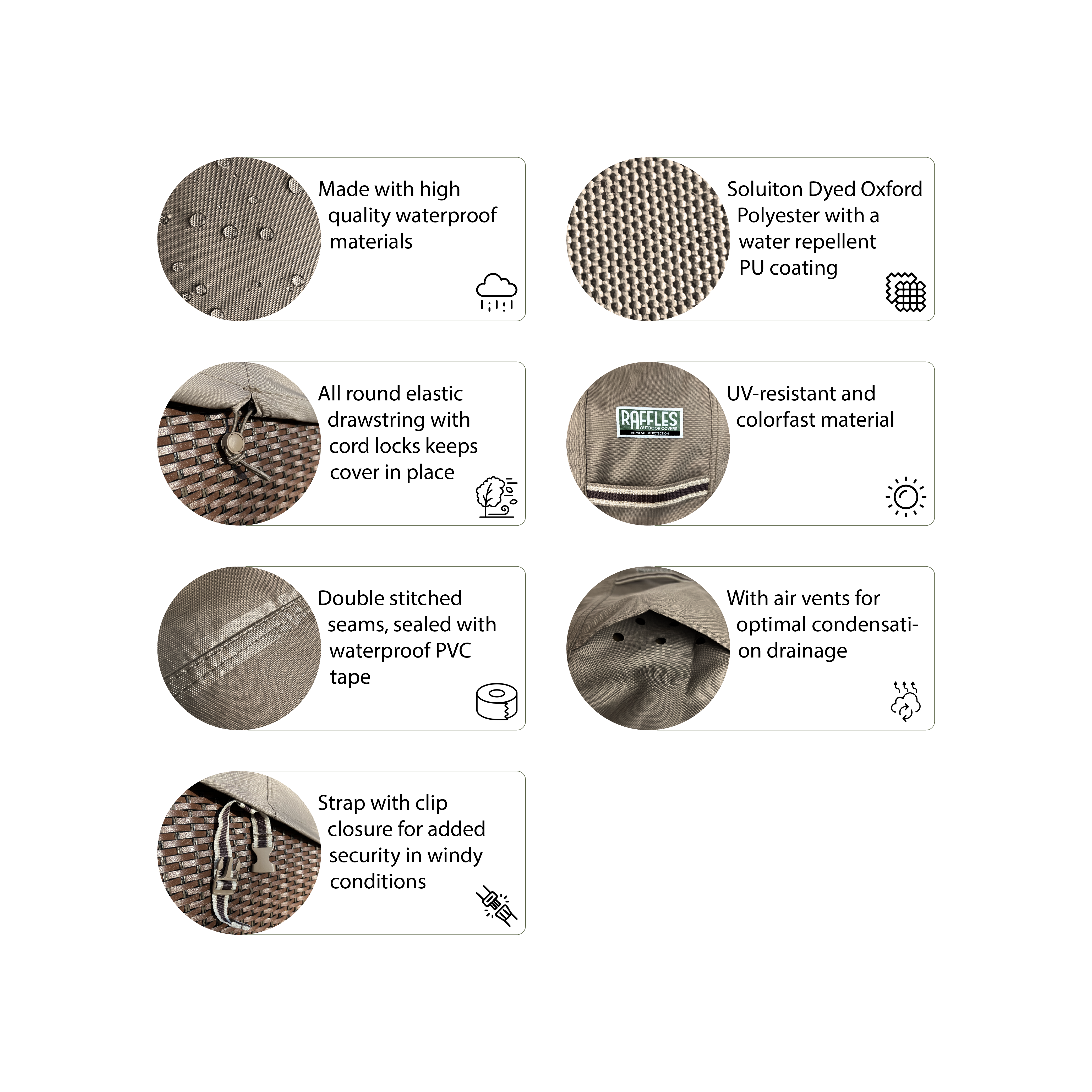 Specificaties Raffles Covers RBGE-serie – ronde kamadohoezen