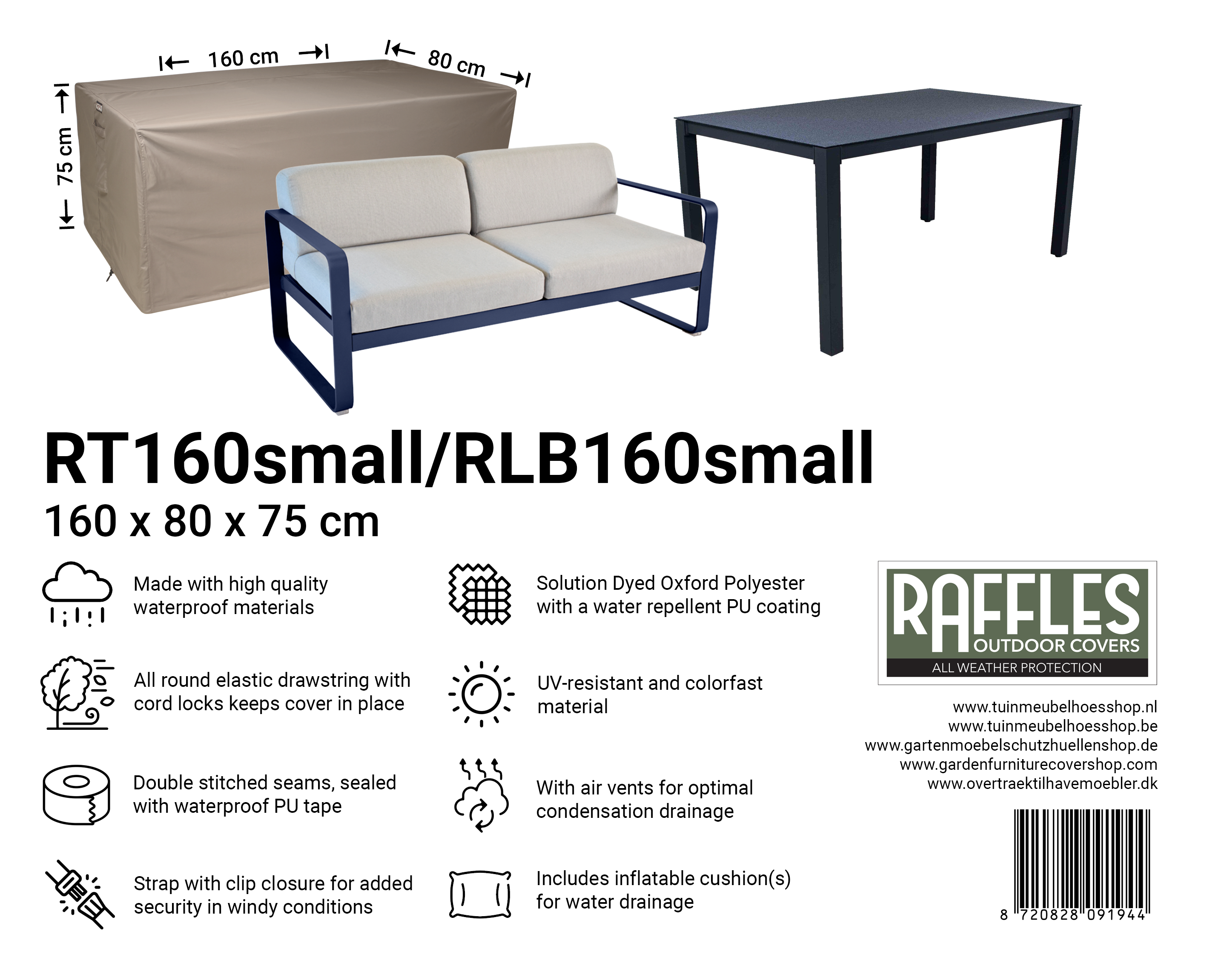 Met de RT-serie tuintafelhoezen van Raffles Covers beschermt u uw tuintafel(s) het hele jaar door tegen regen, zon, vuil, groene aanslag, vogelpoep en UV-straling. Of u nu een compacte bistrotafel, een standaard rechthoekige tuintafel of een extra lange XXL-tafel heeft: er is altijd een passende hoes, zodat uw tafel schoon blijft en direct klaar is voor gebruik.