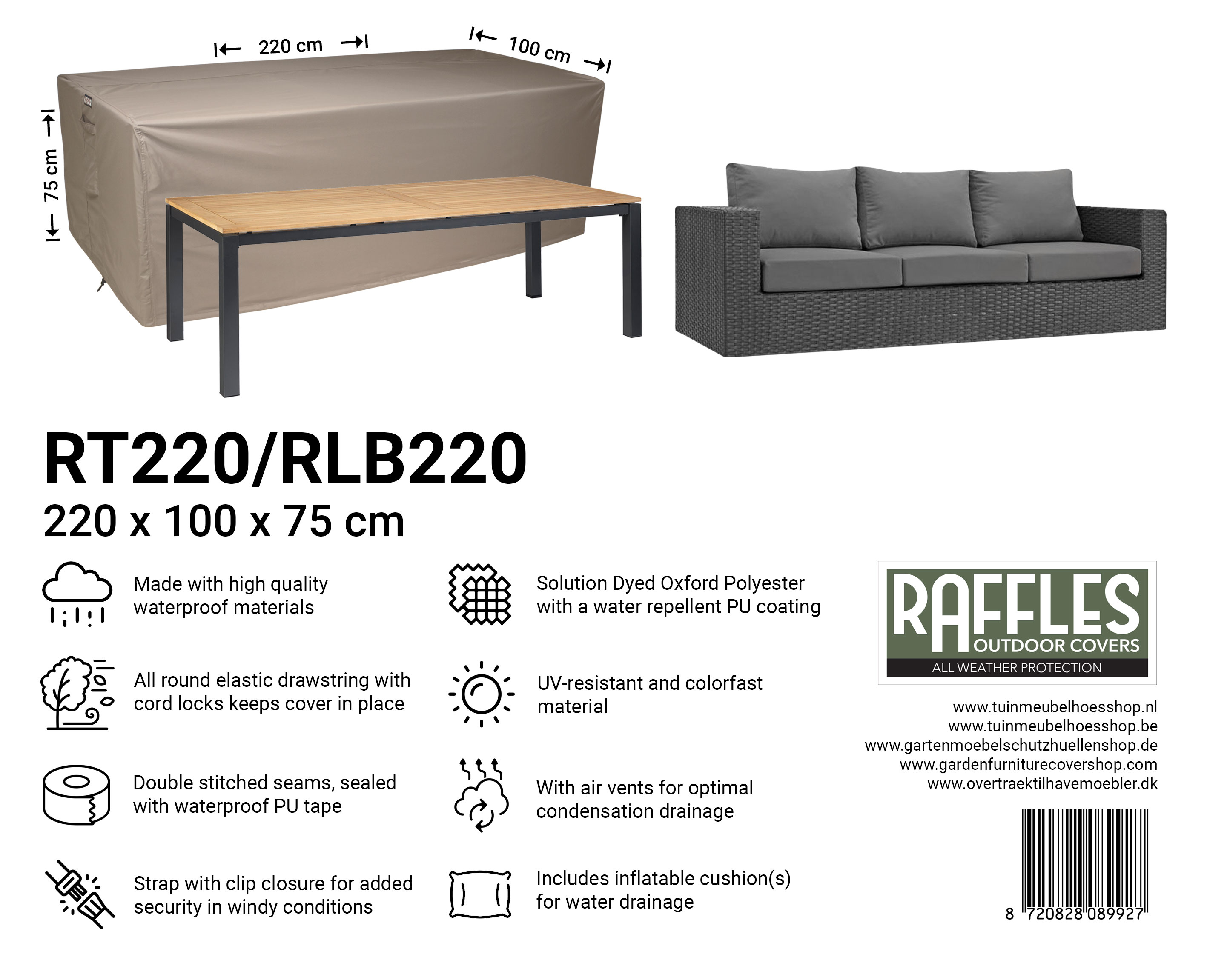 Met een Raffles Covers tuintafelhoes uit de RT-serie kiest u voor doordachte, duurzame en stijlvolle bescherming van uw tuintafel, zodat u in elk seizoen zorgeloos van uw tuin en terras kunt genieten.